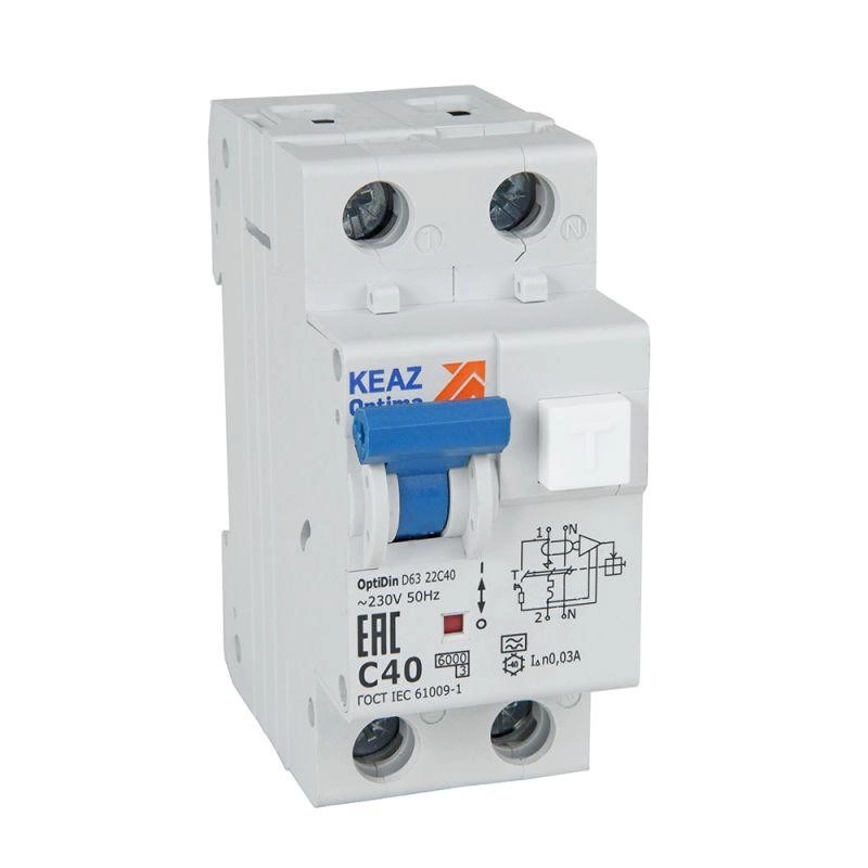 Выключатель автоматический дифференциального тока 2п C 16А 30мА тип A 6кА OptiDin D63-22C16-A УЗ КЭАЗ 333142