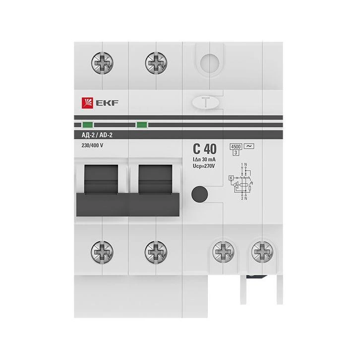 Выключатель автоматический дифференциального тока 2п 4мод. C 40А 30мА тип AC 4.5кА АД-2 PROxima EKF DA2-40-30-pro