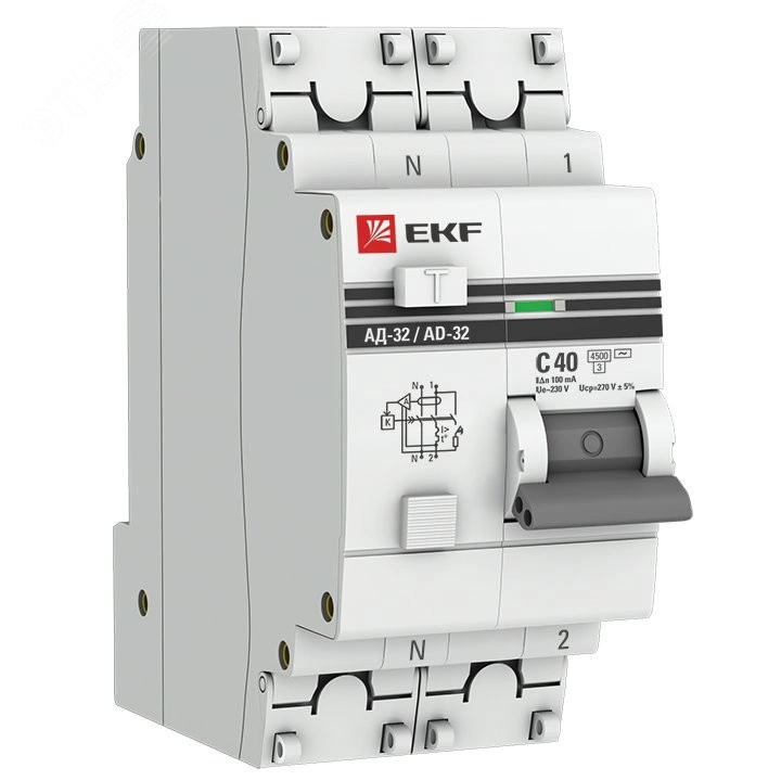 Дифференциальный автоматический выключатель АД-32 серии EKF PROxima представляет собой аппарат сочетающий функции автоматического выключателя с устройством защитного отключения. При обнаружении автоматическим выключателем в защищаемом участке сети тока утечки на землю или сверхтока происходит срабатывание устройства, приводящее к отключению защищаемой сети. ГОСТ Р51327-1-2010 (МЭК 60898-2-2006) . Преимущества - 1. Патентованный двухпозиционный зажим на DIN-рейку. 2. Повышение безопасности электромонтажных работ благодаря прозрачной вставке над индикатором состояния контактов. 3. Встроенная, современная электронная плата с повышенной защитой от импульсных помех и перенапряжений. 4. Наличие пломбируемых панелей для защиты от несанкционированного доступа к проводникам. 5. Комбинированные зажимы из посеребренной меди и анодированной стали скругленной формы с насечками.