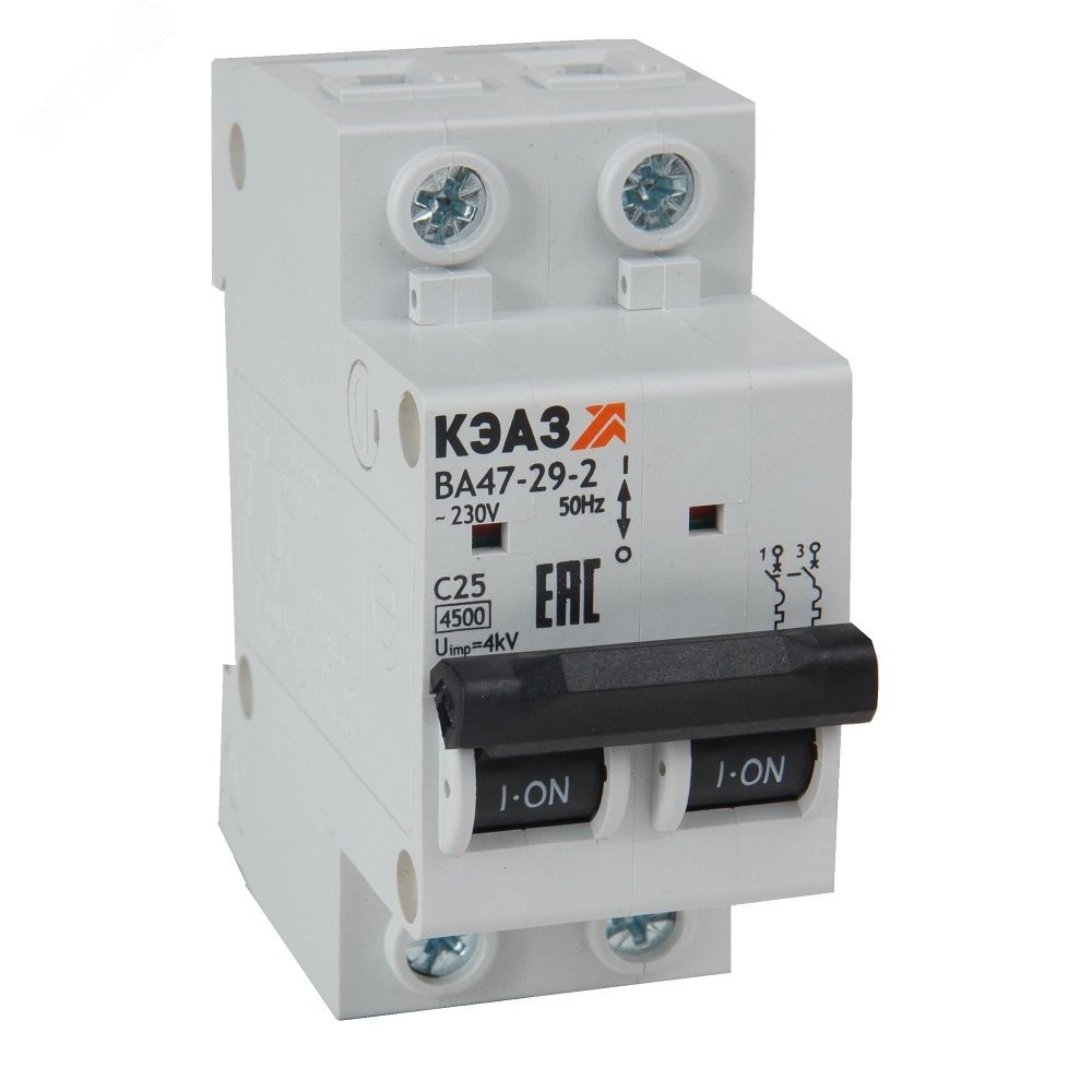 Модульный автоматический 2 полюсный выключатель переменного тока с предельной коммутационной способностью при переменном токе 4.5 кА на номинальный ток 3 А . Модульные автоматические выключатели КЭАЗ на токи до 63А защищают оборудование от токов перегрузки и короткого замыкания в системах распределения электроэнергии. Автомат ВА 47-29 специально разработан для использования в экономичных решениях с ограниченным бюджетом.