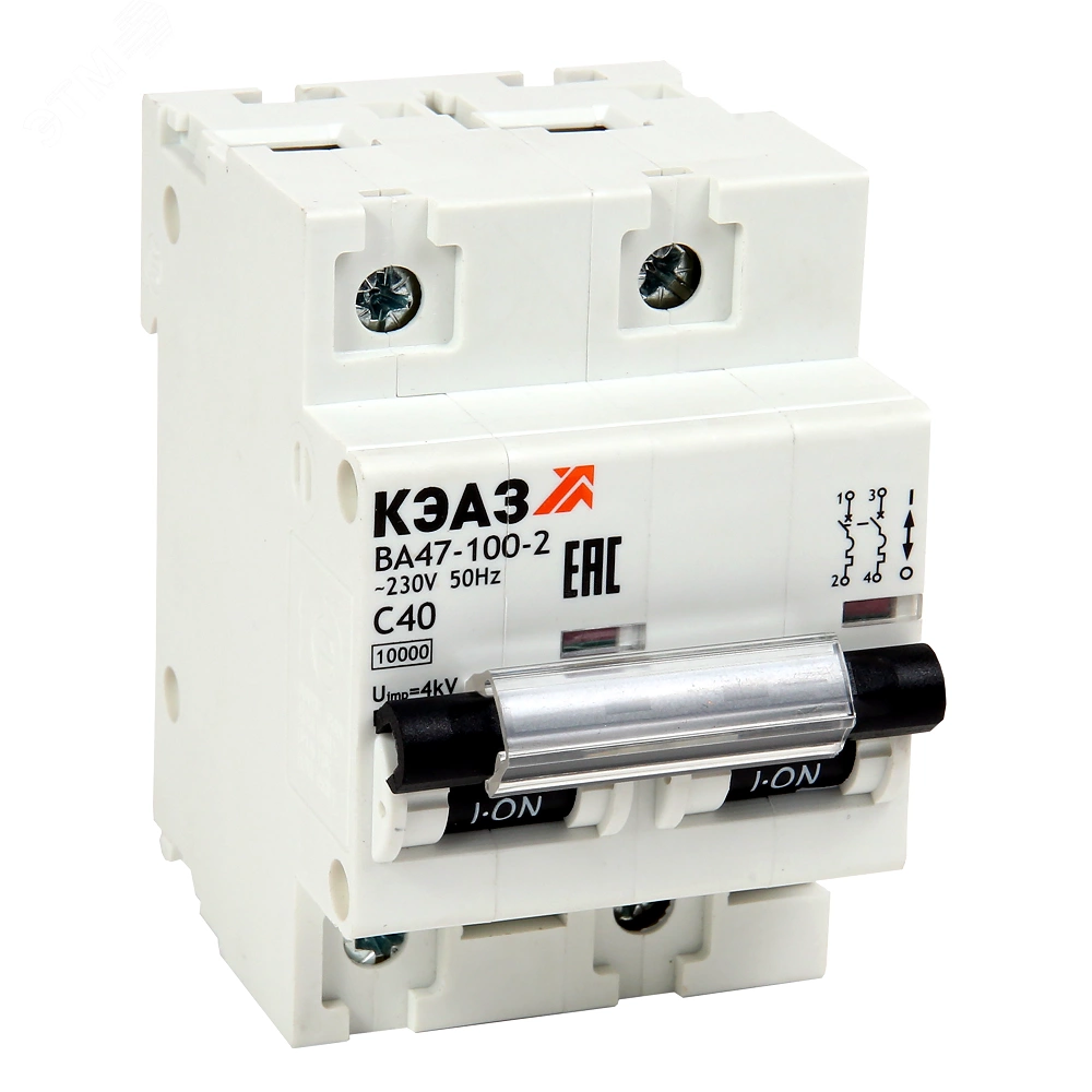 Модульный автоматический 2 полюсный выключатель переменного тока с предельной коммутационной способностью при переменном токе 10 кА на номинальный ток 40 А . Выключатели предназначены для применения в электрических цепях напряжением до 400 В переменного тока частоты 50 Гц, их защиты при перегрузках и коротких замыканиях, проведения тока в нормальном режиме и оперативных включений и отключений указанных цепей. Автомат ВА47 100 специально разработан для использования в экономичных решениях с ограниченным бюджетом.