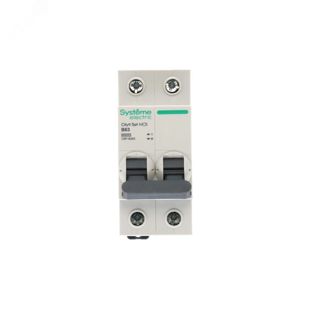 Автоматический выключатель серии City9 Set Systeme Electric, 2-полюсный, номинальный ток 63 А, характеристика B, Icn - 6 кА. Применяется в электрических сетях напряжением 230 В. Предназначен для защиты от перегрузок и токов короткого замыкания. Оснащен механизмом «мгновенной коммутации». Ударопрочный корпус из специального пластика с 6 металлическими заклепками. Безопасные клеммы исключают попадание кабелей в заклеммное пространство.