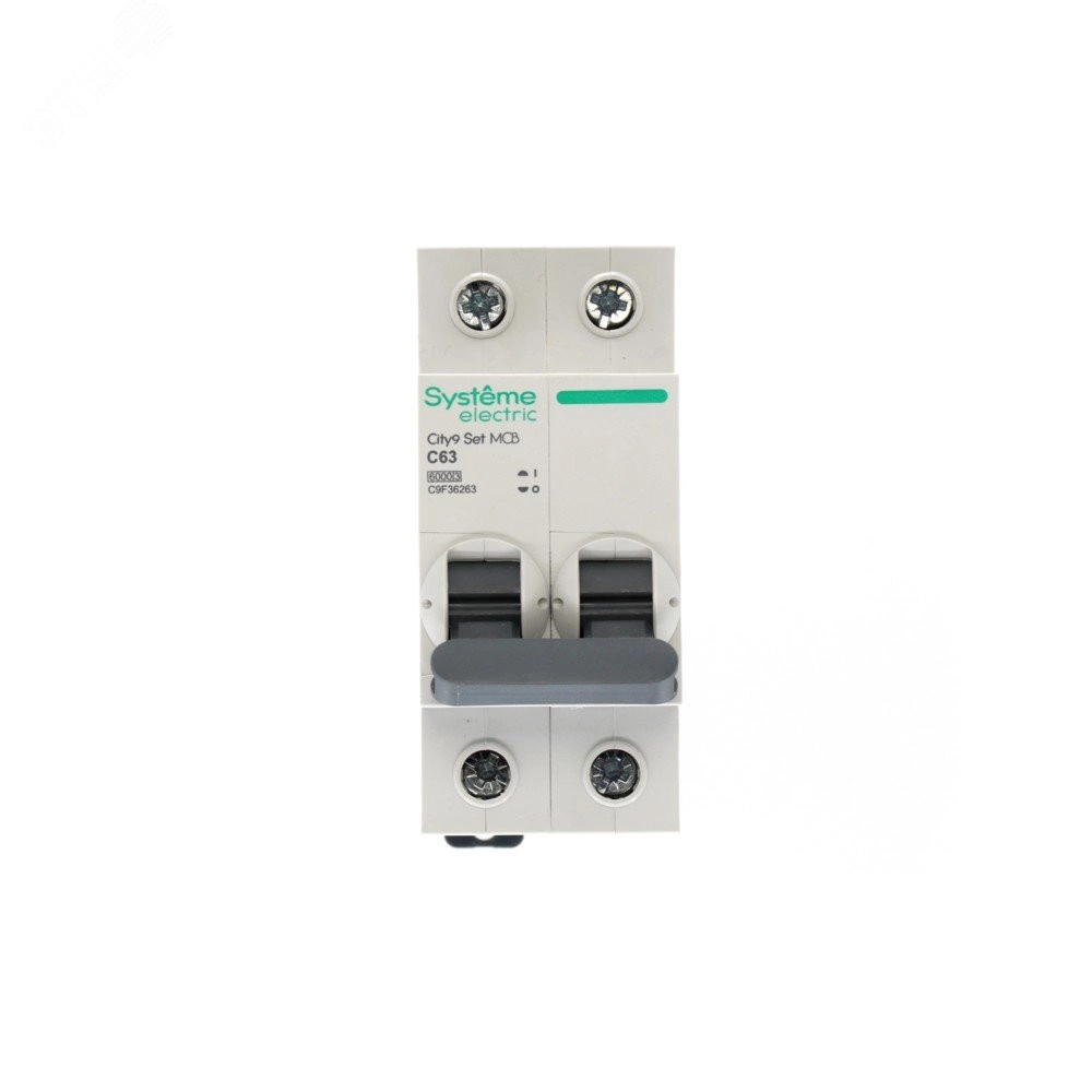 Автоматический выключатель серии City9 Set Systeme Electric, 2-полюсный, номинальный ток 63 А, характеристика С, Icn - 6 кА. Применяется в электрических сетях напряжением 230 В. Предназначен для защиты от перегрузок и токов короткого замыкания. Оснащен механизмом «мгновенной коммутации». Ударопрочный корпус из специального пластика с 6 металлическими заклепками. Безопасные клеммы исключают попадание кабелей в заклеммное пространство.