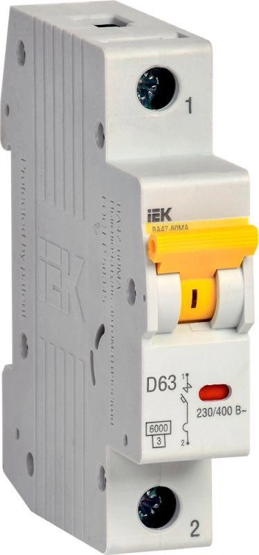 Выключатель автоматический модульный 1п D 63А 6кА ВА47-60МА без тепл. расцеп. IEK MVA33-1-063-D