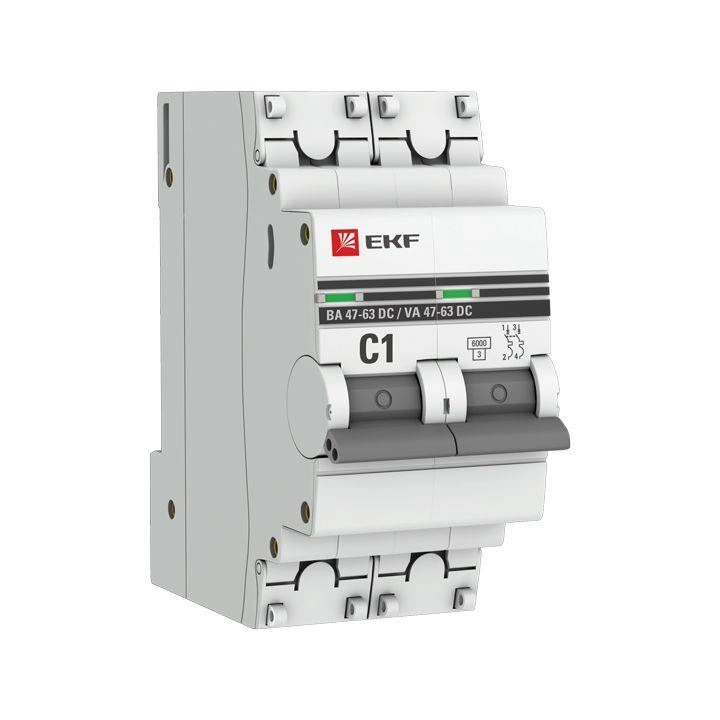 Полное описание: Выключатель автоматический модульный 2п C 1А 6кА ВА 47-63 DC PROxima EKF mcb4763-DC-2-01C-pro