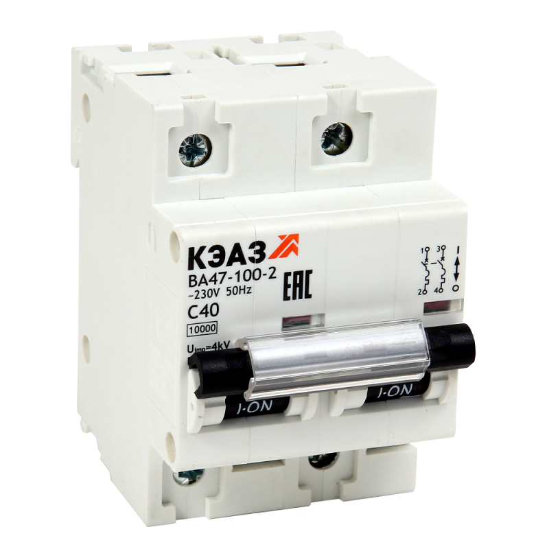 Выключатель автоматический модульный 2п C 20А 10кА ВА47-100-2C20-УХЛ3 КЭАЗ 318121
