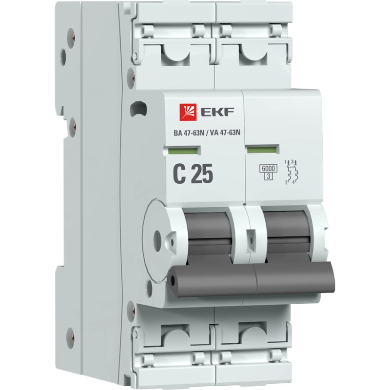 Выключатель автоматический модульный 2п C 25А 6кА ВА 47-63N PROxima EKF M636225C