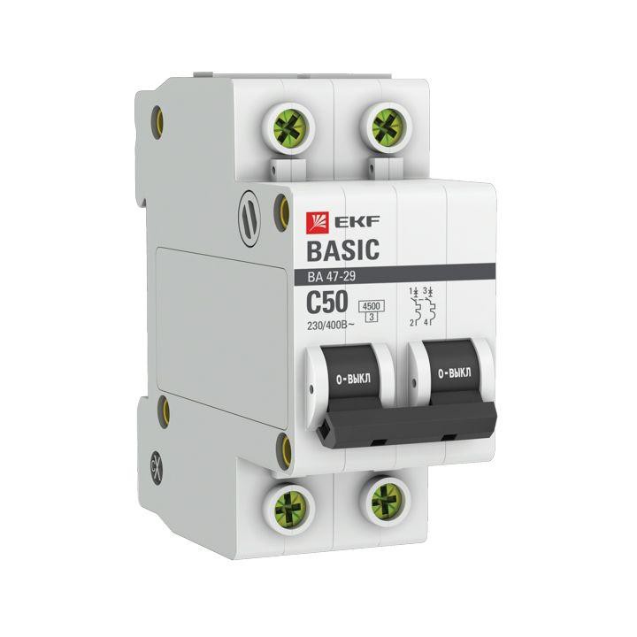 Выключатель автоматический модульный 2п C 50А 4.5кА ВА 47-29 Basic EKF mcb4729-2-50C
