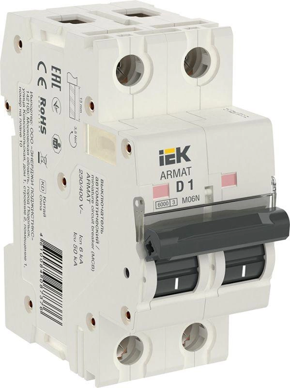 Полное описание: Выключатель автоматический модульный 2п D 1А M06N ARMAT IEK AR-M06N-2-D001