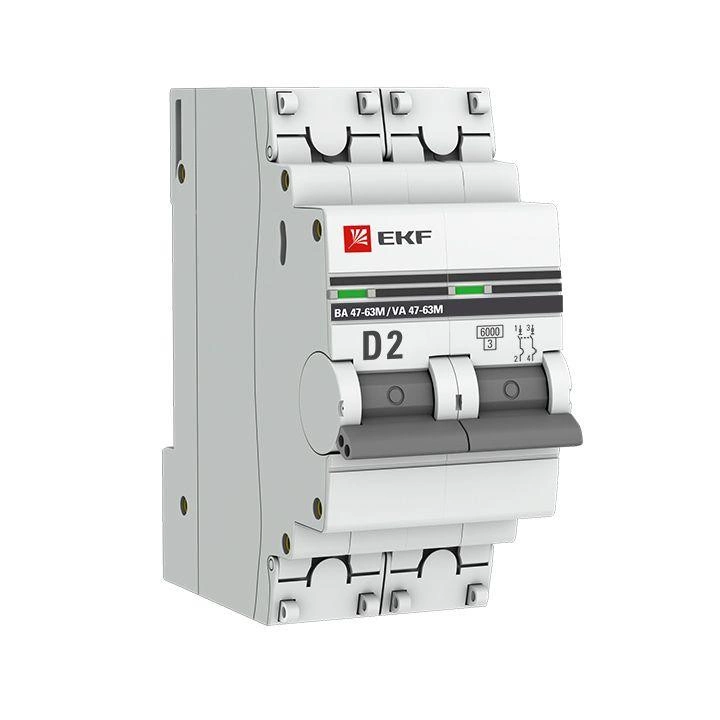 Полное описание: Выключатель автоматический модульный 2п D 2А 6кА ВА 47-63M с одним магнит. расцеп. EKF mcb4763m-6-2-2D-pro