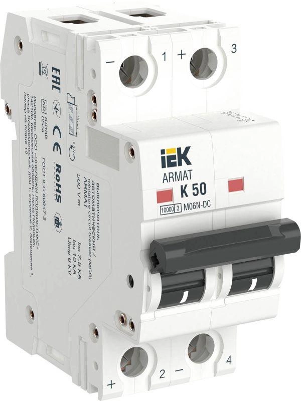 Полное описание: Выключатель автоматический модульный 2п K 50А M06N-DC ARMAT IEK AR-M06N-2-K050DC