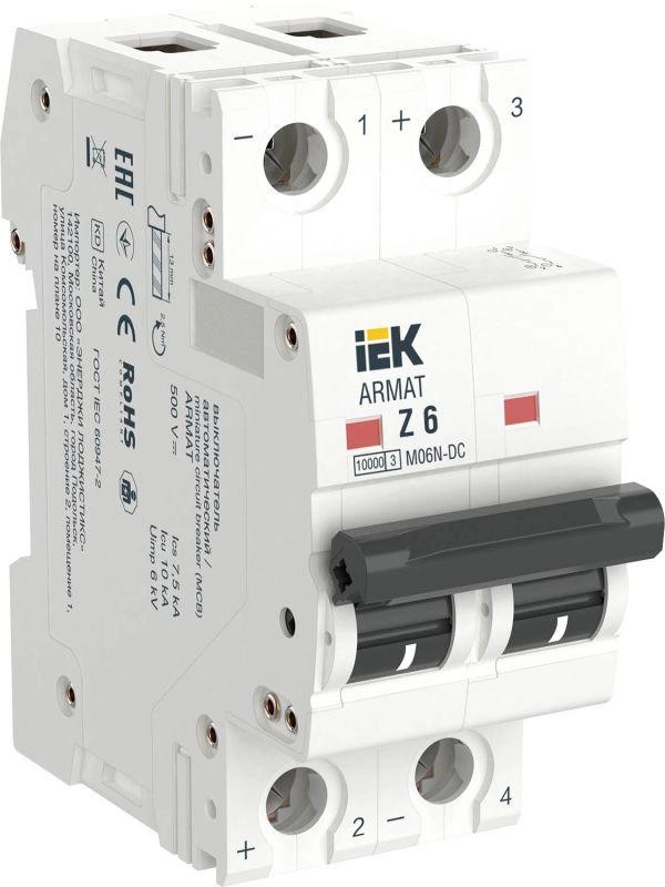 Полное описание: Выключатель автоматический модульный 2п Z 6А M06N-DC ARMAT IEK AR-M06N-2-Z006DC
