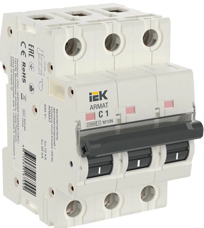 Полное описание: Выключатель автоматический модульный 3п C 1А M10N ARMAT IEK AR-M10N-3-C001