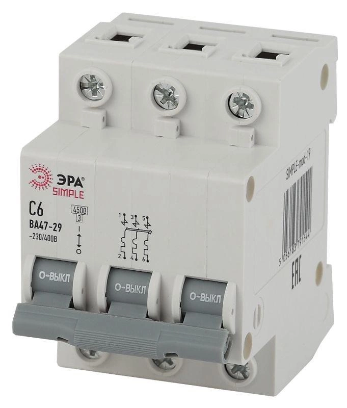 Полное описание: Выключатель автоматический модульный 3п C 25А 4.5кА ВА 47-29 SIMPLE-mod-23 ЭРА Б0039240