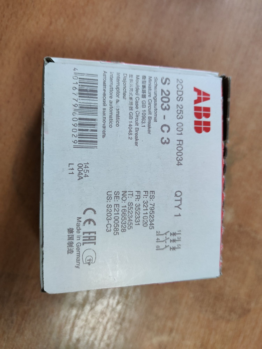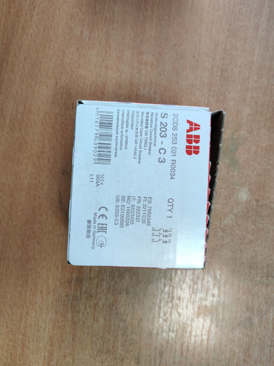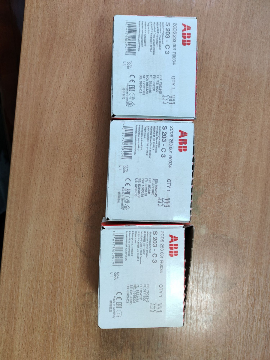 В нашем интернет-магазине вы можете купить Выключатель автоматический модульный 3п C 3А 6кА S203 C3 ABB 2CDS253001R0034 в Екатеринбурге, артикул 2CDS253001R0034. Чтобы уточнить условия оплаты, доставки и действующие скидки на товар, свяжитесь с нашим менеджером по телефону +7 (343) 266-30-88.