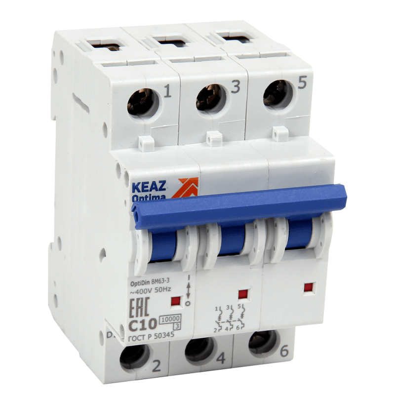Выключатель автоматический модульный 3п C 40А 10кА OptiDin BM63-3C40-10-УХЛ3 КЭАЗ 249192