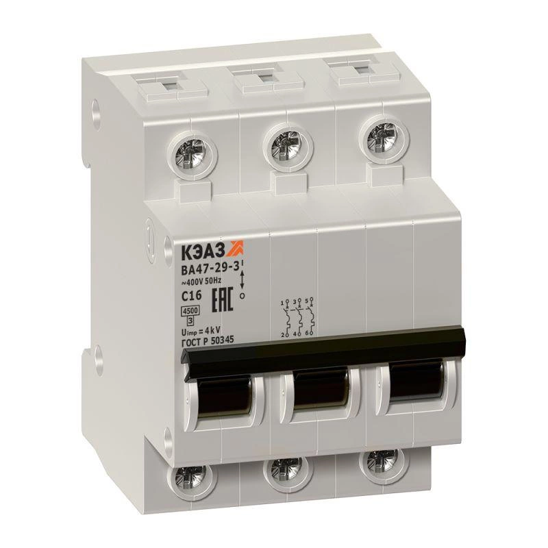 Выключатель автоматический модульный 3п C 63А 4.5кА ВА47-29-3C63-УХЛ3 КЭАЗ 141621