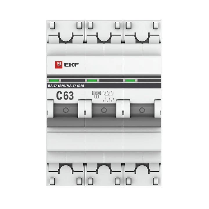 Полное описание: Выключатель автоматический модульный 3п C 63А 6кА ВА 47-63M электромагнит. расцеп. PROxima EKF mcb4763m-6-3-63C-pro