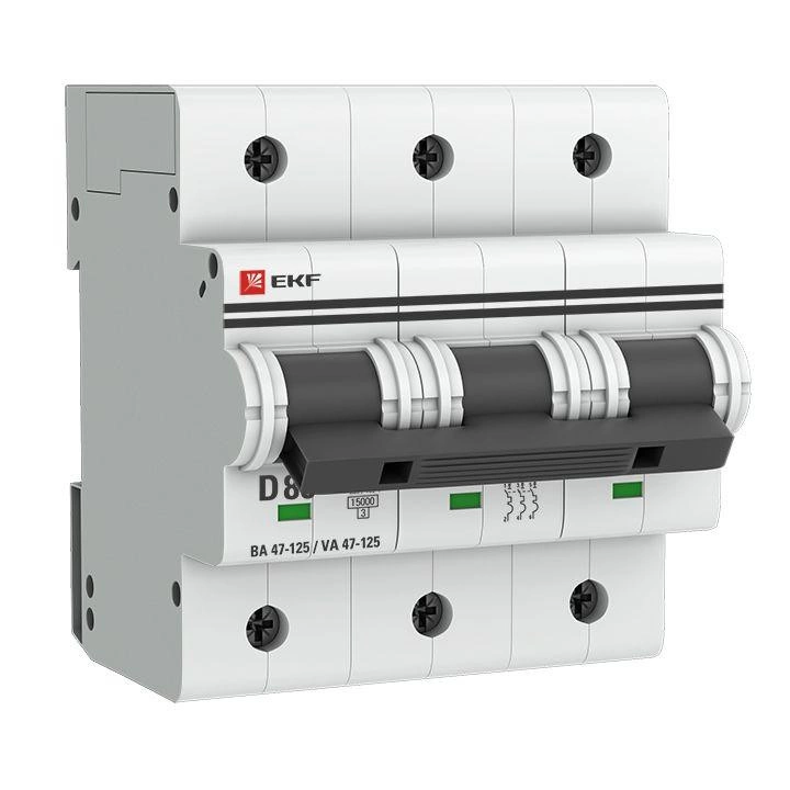 Полное описание: Выключатель автоматический модульный 3п D 80А 15кА ВА 47-125 PROxima EKF mcb47125-3-80D
