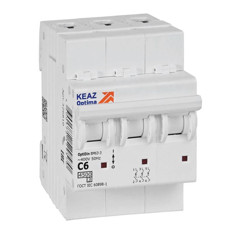 Выключатель автоматический модульный OptiDin BM63-3C6-4.5-УХЛ3 КЭАЗ 326810