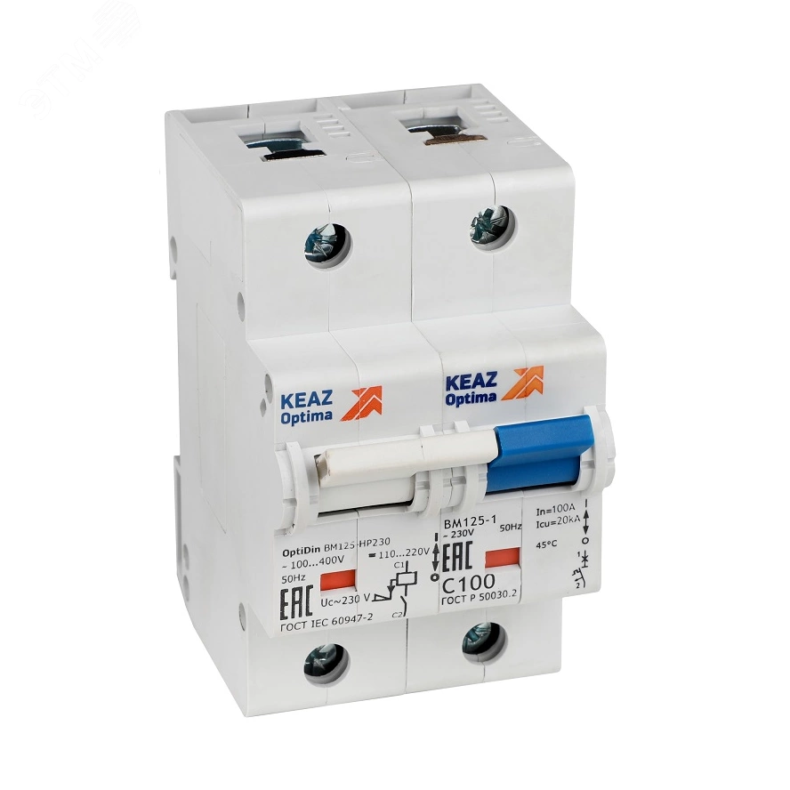 Выключатель автоматический модульный с независимым расцепителем OptiDin BM125-1C125-НР-8ln-УХЛ3