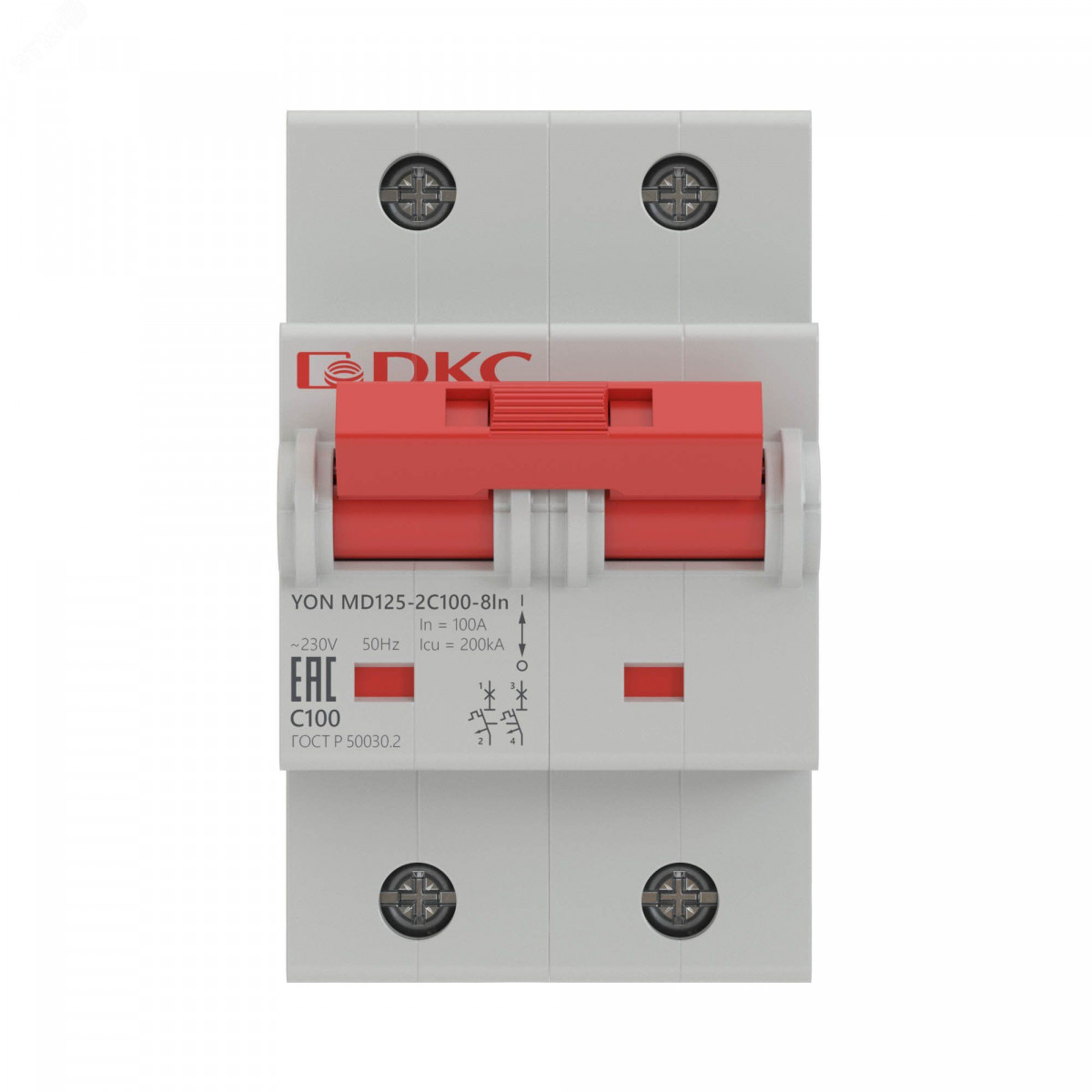 Модульный двухполюсный автоматический выключатель YON MD125 номиналом 80 A с характеристикой расцепителя ''D'' и отключающей способностью 20 кА предназначен для применения в электрических цепях на­пряжением до 400 В переменного тока частоты 50 Гц, их защиты при перегрузках и коротких замыканиях, проведения тока в нормальном режиме и оперативного включения и отключения указанных цепей.