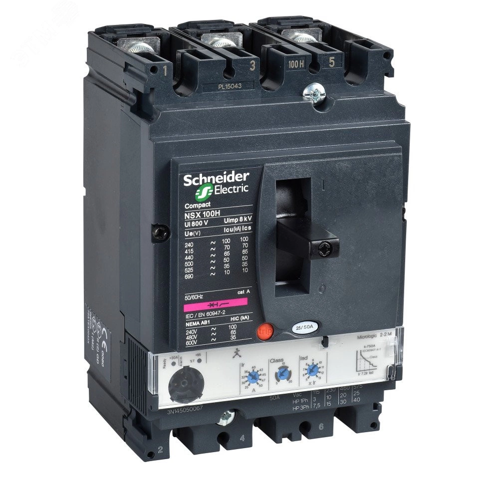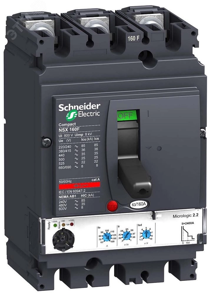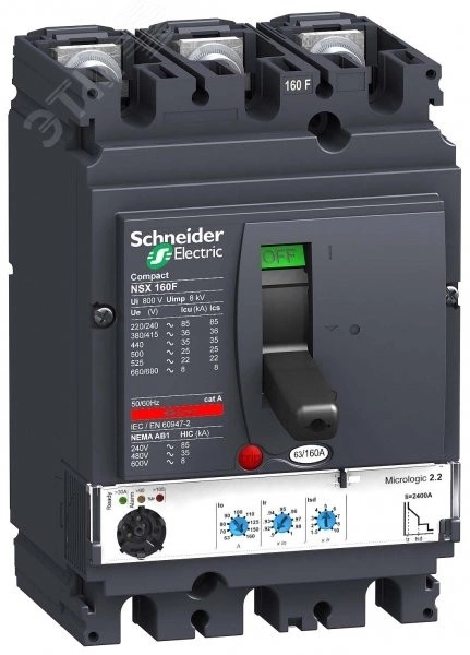Выключатель автоматический NSX160H MICROLOGIC 2.2 160A 3P3D электронный расцепитель