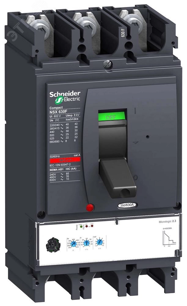 Выключатель автоматический NSX630N MICROLOGIC 2.3 630A 3P3D электронный расцепитель