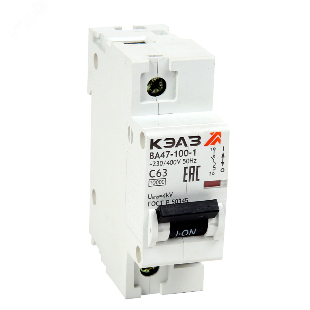 Модульный автоматический 1 полюсный выключатель переменного тока с предельной коммутационной способностью при переменном токе 10 кА на номинальный ток 10 А . Выключатели предназначены для применения в электрических цепях напряжением до 400 В переменного тока частоты 50 Гц, их защиты при перегрузках и коротких замыканиях, проведения тока в нормальном режиме и оперативных включений и отключений указанных цепей. Автомат ВА47 100 специально разработан для использования в экономичных решениях с ограниченным бюджетом.