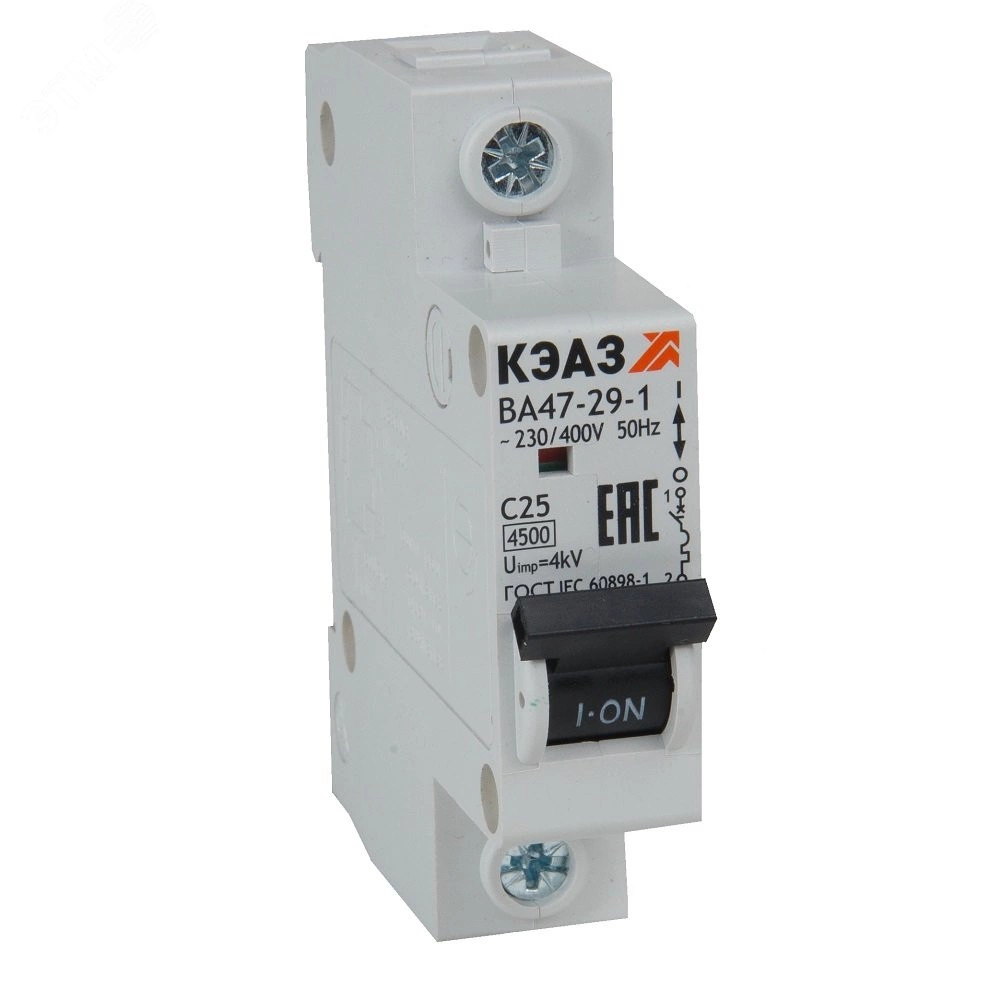 Модульный автоматический 1 полюсный выключатель переменного тока с предельной коммутационной способностью при переменном токе 4.5 кА на номинальный ток 16 А . Модульные автоматические выключатели КЭАЗ на токи до 63А защищают оборудование от токов перегрузки и короткого замыкания в системах распределения электроэнергии. Автомат ВА 47-29 специально разработан для использования в экономичных решениях с ограниченным бюджетом.