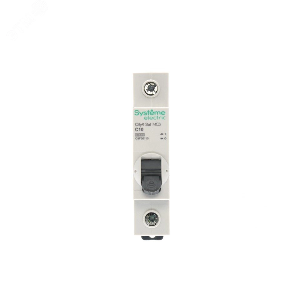 Автоматический выключатель серии City9 Set Systeme Electric, 1-полюсный, номинальный ток 10 А, характеристика С, Icn - 6 кА. Применяется в электрических сетях напряжением 230 В. Предназначен для защиты от перегрузок и токов короткого замыкания. Оснащен механизмом «мгновенной коммутации». Ударопрочный корпус из специального пластика с 6 металлическими заклепками. Безопасные клеммы исключают попадание кабелей в заклеммное пространство.
