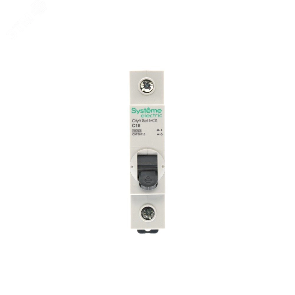 Автоматический выключатель серии City9 Set Systeme Electric, 1-полюсный, номинальный ток 16 А, характеристика С, Icn - 6 кА. Применяется в электрических сетях напряжением 230 В. Предназначен для защиты от перегрузок и токов короткого замыкания. Оснащен механизмом «мгновенной коммутации». Ударопрочный корпус из специального пластика с 6 металлическими заклепками. Безопасные клеммы исключают попадание кабелей в заклеммное пространство.