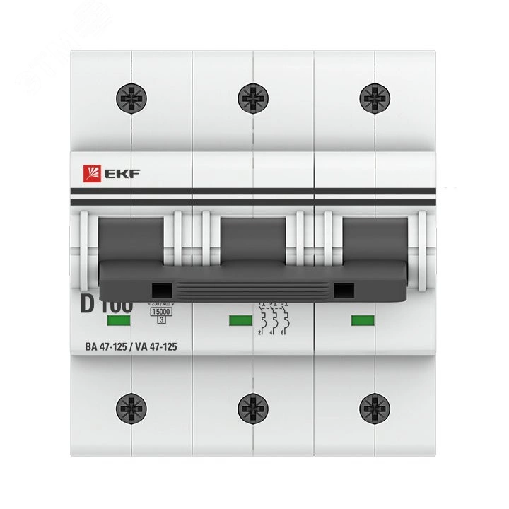 Автоматические выключатели ВА 47-125 предназначены для оперативного управления участками электрических цепей, а так же защиты от токов перегрузки и короткого замыкания в административных, промышленных и жилых зданиях. Благодаря высокой предельной коммутационной способности 15 кА данные выключатели могут использоваться вместо силовых автоматических выключателей. Выключатели имеют ширину корпуса 1,5 модуля (27мм), производятся с номинальными токами до 125 А, в одно-, двух-, трех- и четырех-полюсном исполнениях. Для надежного гашения дуги используется двойной разрыв контактов и две дугогасительные камеры. Оптимальная токопроводимость обеспечивается серебросодержащей контактной группой.