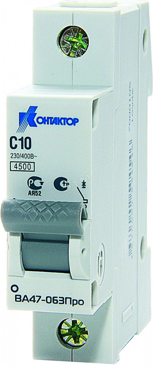Выключатели ВА47-063Про предназначены для проведения тока в нормальном режиме и отключения тока при коротких замыканиях, перегрузках, а также для нечастых оперативных включений и отключений электрических цепей и рассчитаны для эксплуатации в электроустановках с номинальным напряжением до 400 В переменного тока частоты 50 Гц. В конструкцию автоматических выключателей ВА47-063Про входят тепловой и электромагнитный расцепители (по одному на каждый полюс), обеспечивающие защиту от токов перегрузки и короткого замыкания соответственно. Ток перегрузки, возникающий в защищаемой цепи, приводит к нагреванию биметаллической пластины теплового расцепителя. Пластина изгибается и приводит в действие механизм расцепления выключателя. Выключатель срабатывает и размыкает цепь. Возникающий в защищаемой сети ток короткого замыкания приводит в действие электромагнитный расцепитель. Выключатель срабатывает и размыкает цепь.
