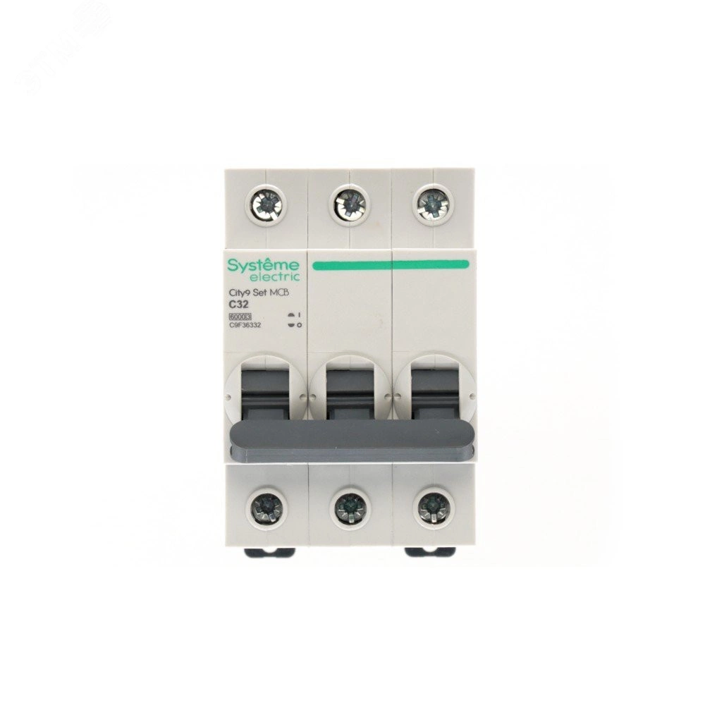 Автоматический выключатель серии City9 Set Systeme Electric, 3-полюсный, номинальный ток 32 А, характеристика С, Icn - 6 кА. Применяется в электрических сетях напряжением 400 В. Предназначен для защиты от перегрузок и токов короткого замыкания. Оснащен механизмом «мгновенной коммутации». Ударопрочный корпус из специального пластика с 6 металлическими заклепками. Безопасные клеммы исключают попадание кабелей в заклеммное пространство.