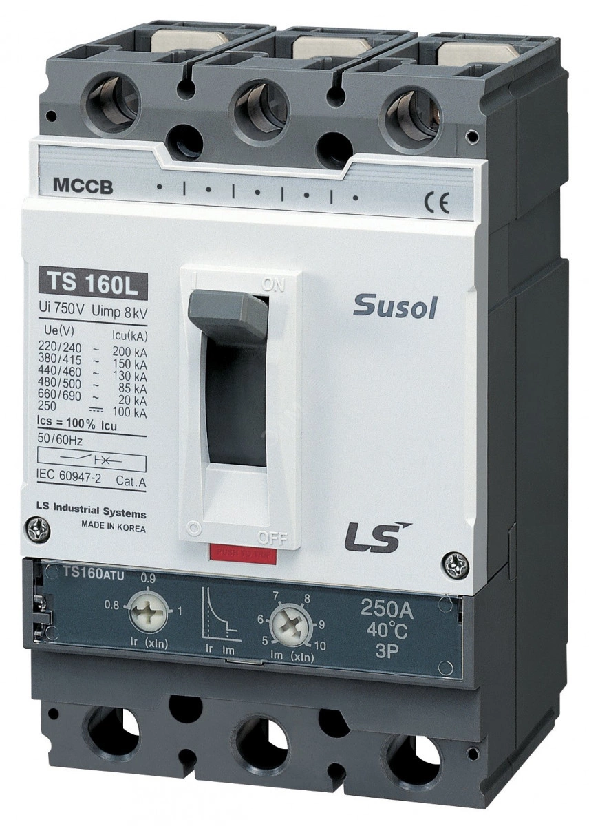 Автоматические выключатели серии Susol выпускаются в корпусах 100, 160, 250, 630, 800, 1600AF. Автоматические выключатели серии Susol предназначены для защиты распределительных сетей, получающих питание от трансформаторов или генератов, электродвигателей и генераторов.