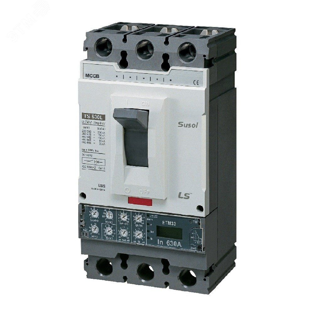 Силовой 3 полюсный автоматический выключатель переменного тока в литом корпусе на номинальный ток 160 А, с электронным расцепителем с отключающей способностью 65кА. Трехполюсные автоматические выключатели LS Electric типа Susol TS предназначены для применения в электрических цепях с напряжением 690 В переменного тока частотой 50 гЦ, их защиты от токов короткого замыкания, токов перегрузки, а также для нечастых оперативных включений и отключений.
