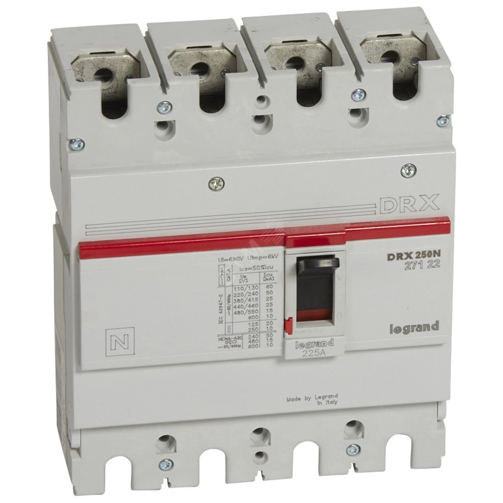 Выключатель автоматический в литом корпус фиксированный 225А четырехполюсный, 25кА