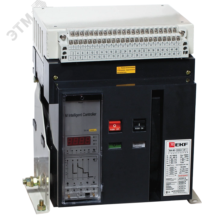 Автоматические выключатели серии ВА-45 с микропроцессорным управлением на номинальные токи от 630 до 5000А, предназначены для осуществления функций защиты силовых электрических сетей переменного тока низкого напряжения (до 690В) от токов перегрузки и короткого замыкания, в том числе с выдержкой времени, оперативных включений и отключений сетей при управлении непосредственно оператором, или по командным сигналам автоматической системы управления распределением электрической энергии, в которой установлен выключатель, для отключения сети в случае снижения напряжения сети ниже допустимого или пропадания напряжения. Микропроцессорные блоки защиты и управления позволяют информировать эксплуатирующий персонал о состоянии нагрузки и параметрах защищаемой сети, о причинах автоматического отключения сети выключателем, о состоянии самого выключателя и его главных контактов.