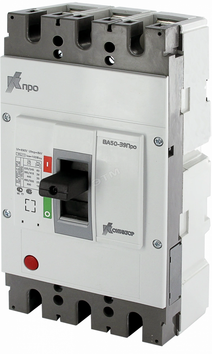 Автоматический выключатель серии ВА50-39Про на токи от 250 до 630 А предназначен для проведения тока в нормальном режиме и отключения тока при коротких замыканиях, перегрузках, недопустимых снижениях напряжения, а также для нечастых оперативных включений и отключений электрических цепей. Рассчитан на эксплуатацию в электроустановках с номинальным напряжением до 690 В переменного тока частоты 50/60 Гц. Отличается высокой безопасностью, традиционным качеством и современными конструкторскими решениями в сочетании с компактностью. Имеются исполнения с электронным и термомагнитными расцепителями. Уставки термомагнитных расцепителей также являются регулируемыми. Отличительные особенности автоматических выключателей - адаптация к современным условиям, улучшенная эргономика, унифицированные аксессуары.