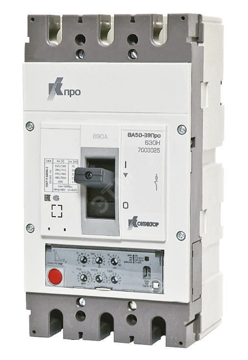 Автоматический выключатель серии ВА50-39Про на токи от 250 до 630 А предназначен для проведения тока в нормальном режиме и отключения тока при коротких замыканиях, перегрузках, недопустимых снижениях напряжения, а также для нечастых оперативных включений и отключений электрических цепей. Рассчитан на эксплуатацию в электроустановках с номинальным напряжением до 690 В переменного тока частоты 50/60 Гц. Отличается высокой безопасностью, традиционным качеством и современными конструкторскими решениями в сочетании с компактностью. Имеются исполнения с электронным и термомагнитными расцепителями. Уставки термомагнитных расцепителей также являются регулируемыми. Отличительные особенности автоматических выключателей - адаптация к современным условиям, улучшенная эргономика, унифицированные аксессуары.