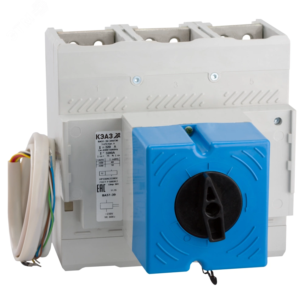 Силовой 3 полюсный автоматический выключатель переменного тока в литом корпусе на номинальный ток 800 А. Трехполюсные автоматические выключатели КЭАЗ типа ВА 51-39 предназначены для применения в электрических цепях с напряжением 400 / 690 В переменного тока частотой 50 и 60 Гц и 440В постоянного тока, их защиты от токов короткого замыкания, токов перегрузки, недопустимых снижений напряжения, а также для нечастых оперативных включений и отключений.