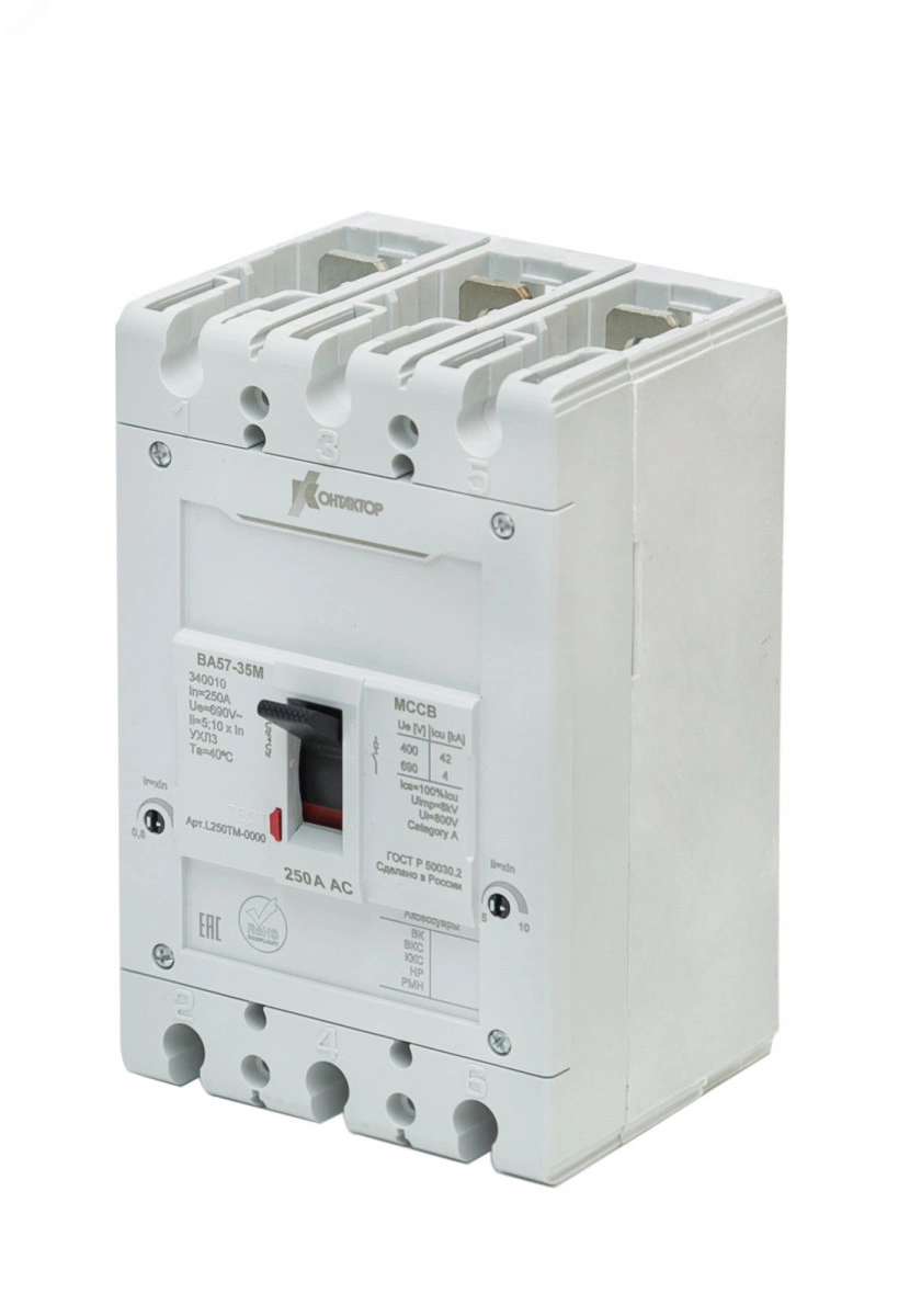 Серия автоматических выключателей в литом корпусе от 16 А до 250 А с отключающей способностью до 42 кА. Версии на переменный ток успешно применяются в промышленности и энергетике, на объектах инфраструктуры ЖКХ и агропромышленного комплекса, в гражданском и коммерческом строительстве. Аппараты ВА57-35М на постоянный ток находят применение в транспортной инфраструктуре, альтернативной энергетике, дата-центрах. Расширенные возможности применения на ответственных объектах за счёт доукомплектации необходимыми функциями и самостоятельного монтажа аксессуаров (НР, РМН, ДК, втычных устройств переднего и заднего присоединения, мотор-приводов, поворотных рукояток) в автоматические выключатели, а также наличия версии аппаратов с регулируемыми уставками. Произведено в России, что дает возможность использовать в программе по импортозамещению.