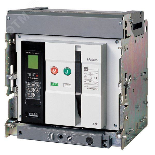 Силовой 3 полюсный воздушный автоматический выключатель переменного тока в выкатном исполнении на номинальный ток 3200 А, с электронным расцепителем (AC6), мотор-приводом, катушкой включения, независимым расцепителем. Корзина заказывается отдельно. Выключатель имеет номинальную отключающую способность 85 кА. Трехполюсные автоматические выключатели LS Electric типа Metasol предназначены для применения в электрических цепях с напряжением 690 В переменного тока частотой 50 гЦ, их защиты от токов короткого замыкания, токов перегрузки, а также для нечастых оперативных включений и отключений.