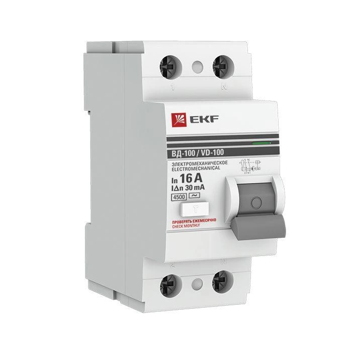 Выключатель дифференциального тока (УЗО) 2п 16А 30мА тип AC ВД-100 (электромех.) PROxima EKF elcb-2-16-30-em-pro