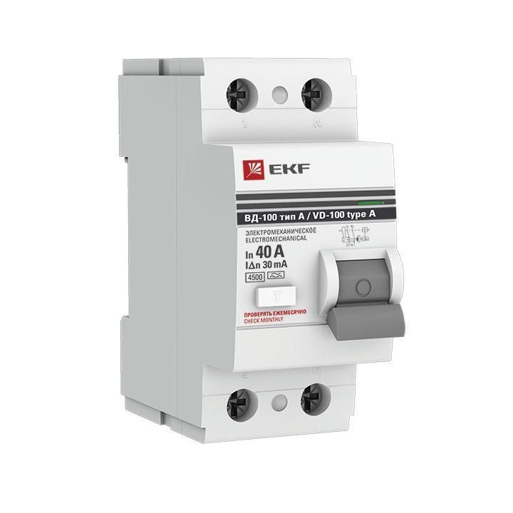 Полное описание: Выключатель дифференциального тока (УЗО) 2п 40А 30мА тип A ВД-100 (электромех.) PROxima EKF elcb-2-40-30-em-a-pro