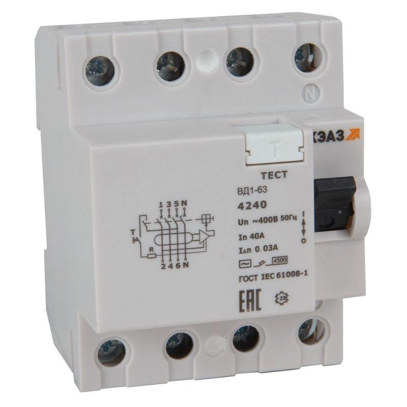 Полное описание: Выключатель дифференциального тока (УЗО) 4п 25А 30мА ВД1-63-4225-АС УХЛ4 электронное КЭАЗ 318479