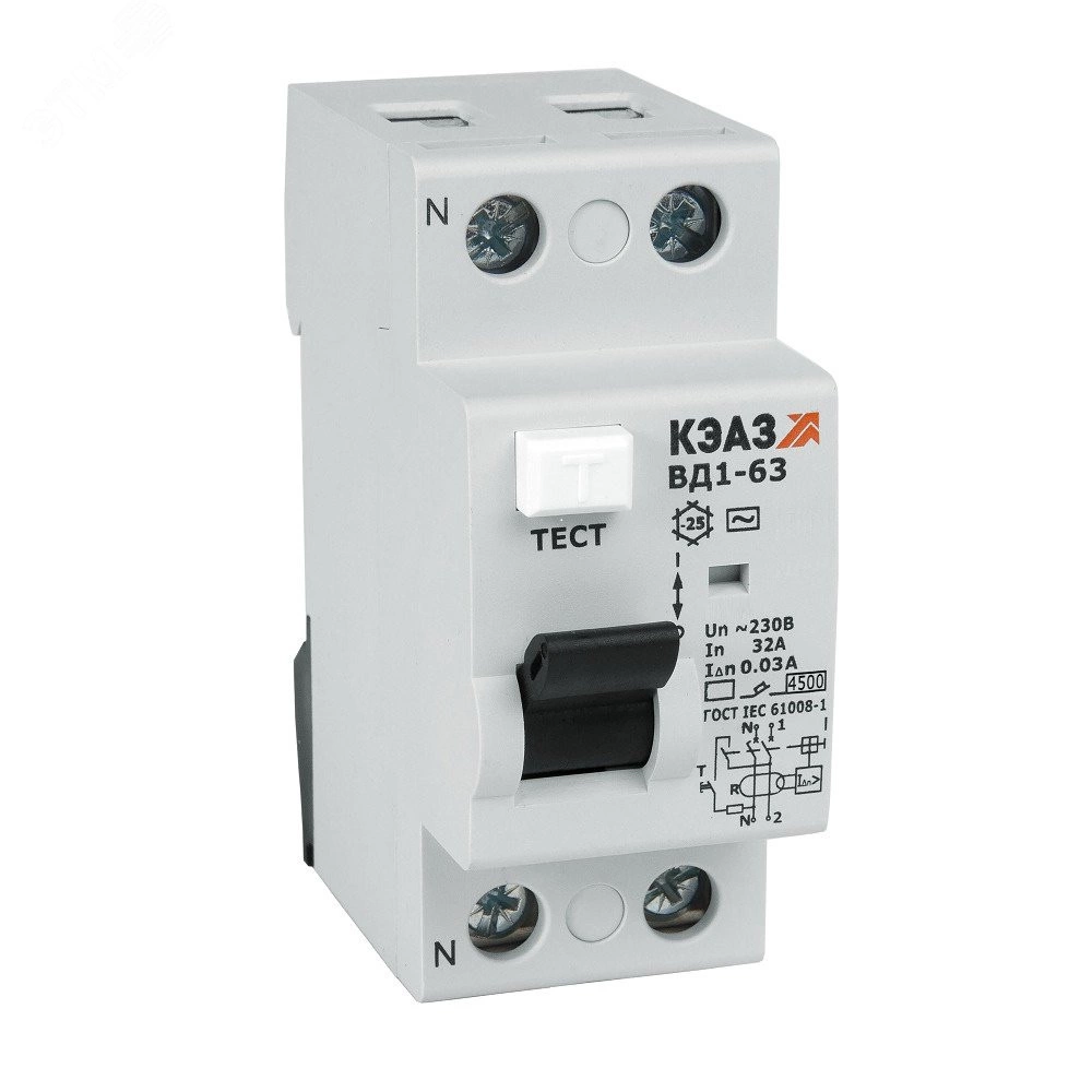 Выключатель дифференциального тока (УЗО) без защиты от сверхтоков 2П 100А 30мА ВД1-63-22100-АС-УХЛ4-КЭАЗ