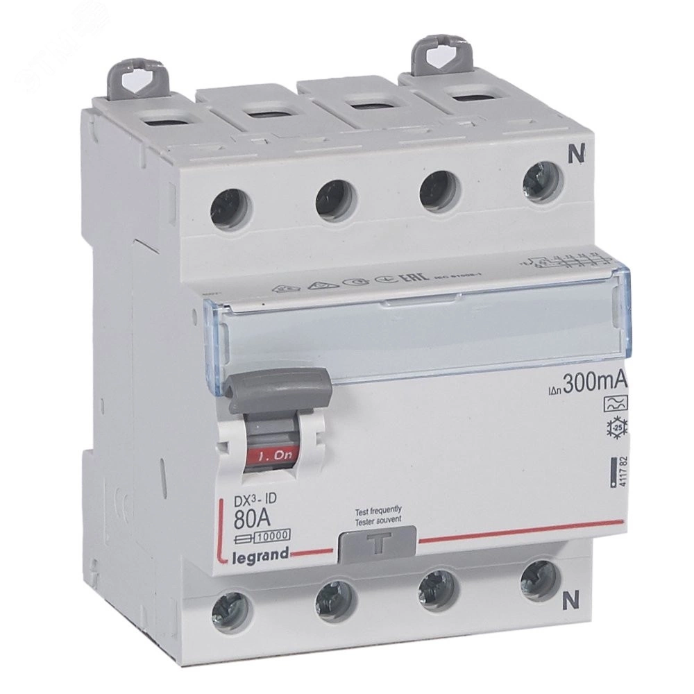 Выключатель дифференциального тока (УЗО) DX3 4П 80А А 300мА N справа
