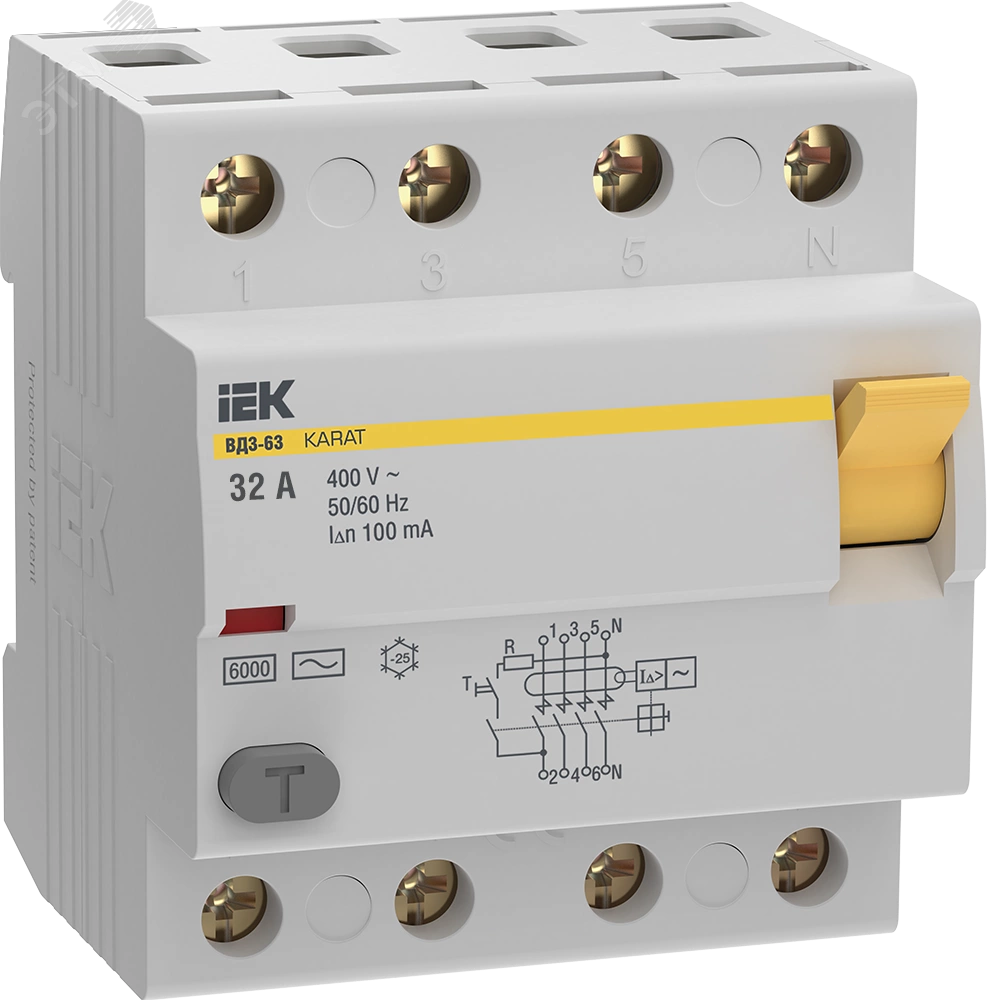Выключатель дифференциальный (УЗО) KARAT ВД3-63 4P 32А 100мА 6кА тип AC